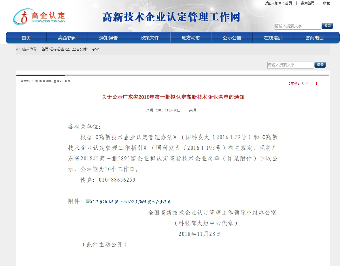 11月28日,科技部火炬中心公布了2018年廣東省批擬認定高新技術(shù)企業(yè)名單,共2601家企業(yè)通過高新技術(shù)企業(yè)認定,佛山市林創(chuàng)科技有限公司作為一家創(chuàng)新型企業(yè),在榜單中占據(jù)一席之地。